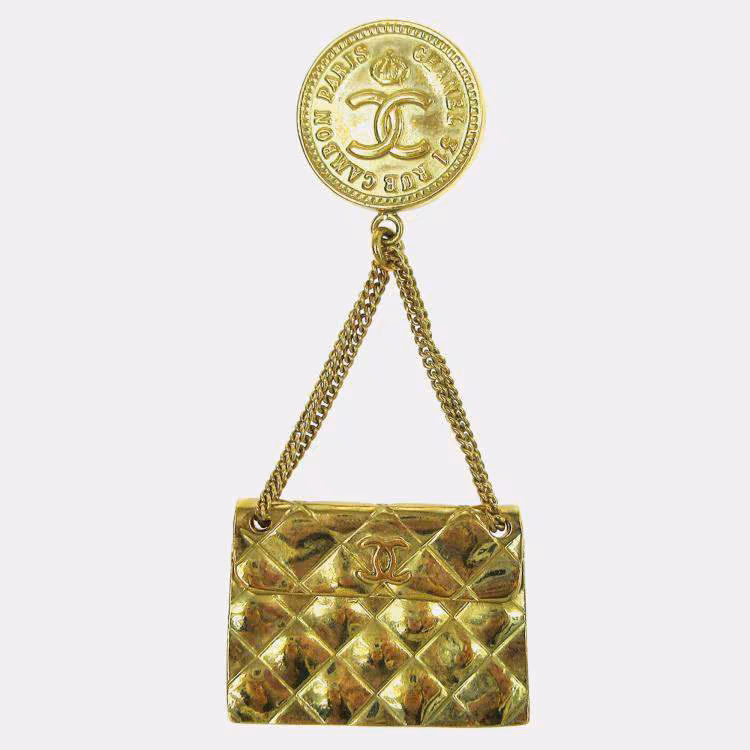 Pre Owned بروش شانيل حقيبة دبوس ذهبي