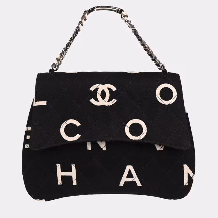 حقيبة شانيل سلسلة كتان سوداء
