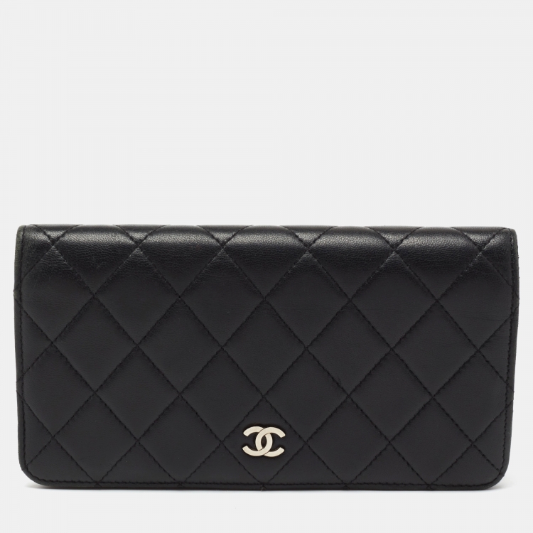 مملوكة مسبقًا محفظة كونتيننتال شانيل لي ين جلد أسود مبطن