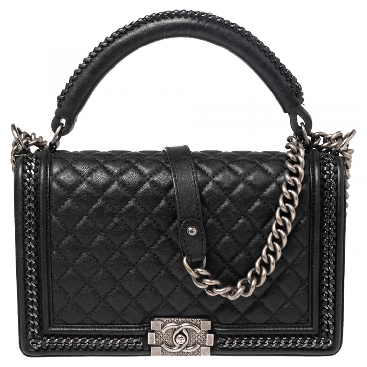 حقيبة شانيل قلاب بوي متوسطة نيو سلسلة مغزولة جلد مبطنة أسود