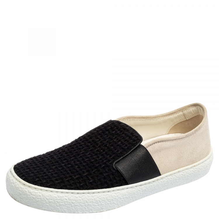 حذاء رياضي شانيل سليب أون سويدي وتويد أبيض/ أسود مقاس 37