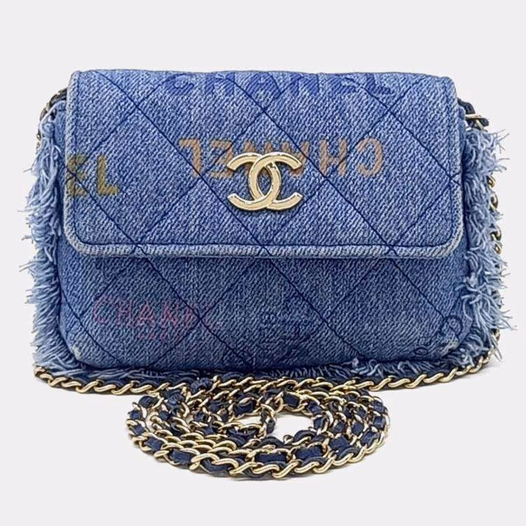 Pre Owned حقيبة شانيـل كروس بودي جينز أزرق
