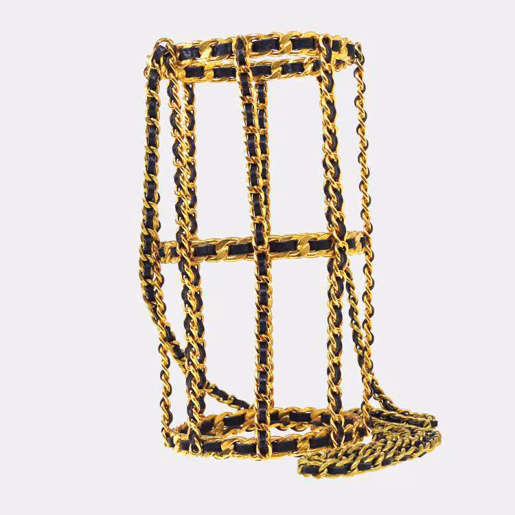 حقيبة شانيل حامل زجاجة أسود ذهبي كتف 94A