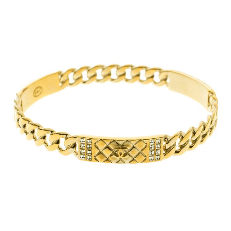 Pre Owned سوار شانيل CC كريستال سلسلة منقوشة ذهبية اللون