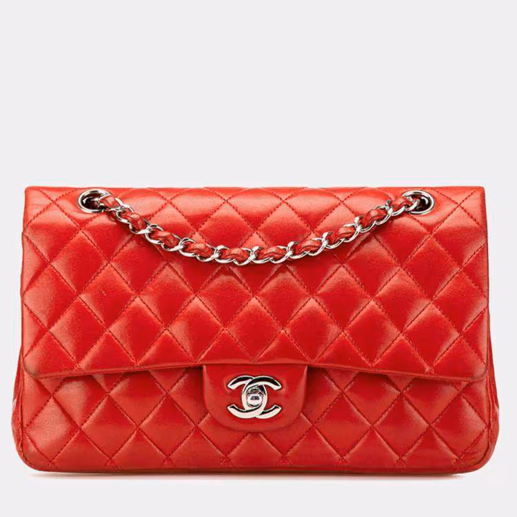 حقيبة كتف شانيل سلسلة كوكو مارك ماتالاس ٢٥ دبيل فلاب جلد خروف أحمر