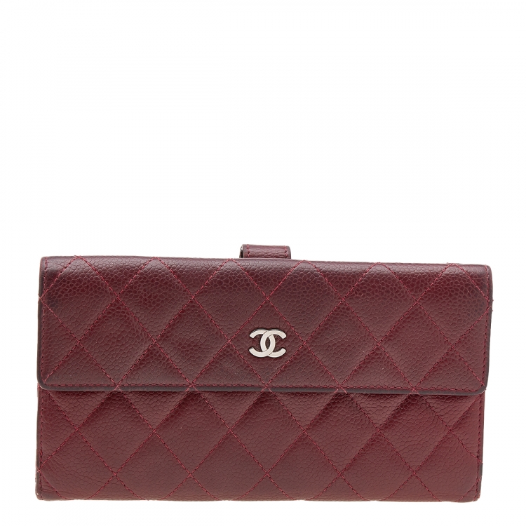 مملوكة مسبقًا محفظة شانيل فرينش جلد كافيار مبطن أحمر داكن بقلاب طويلة