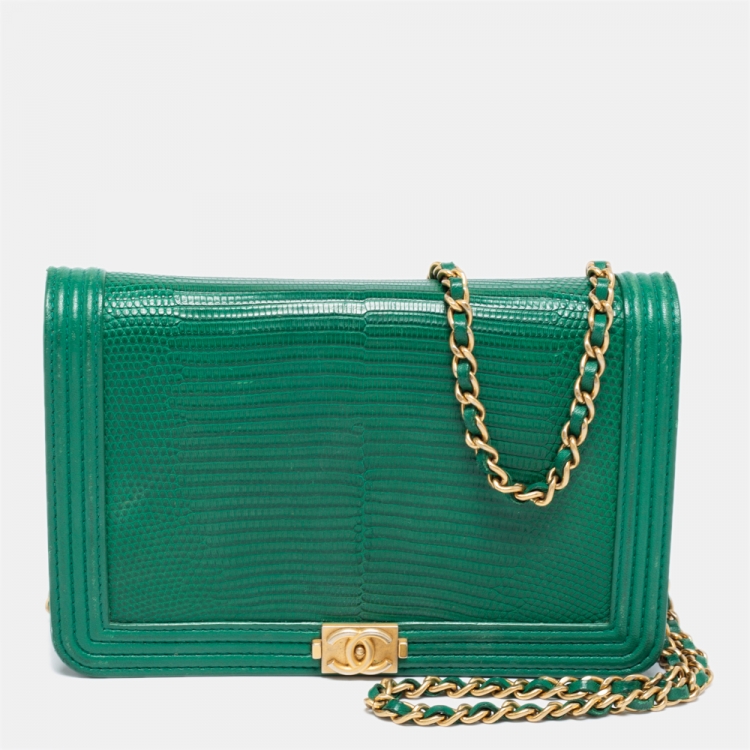 Pre Owned محفظة بسلسلة شانيل بوي جلد سحلية أخضر