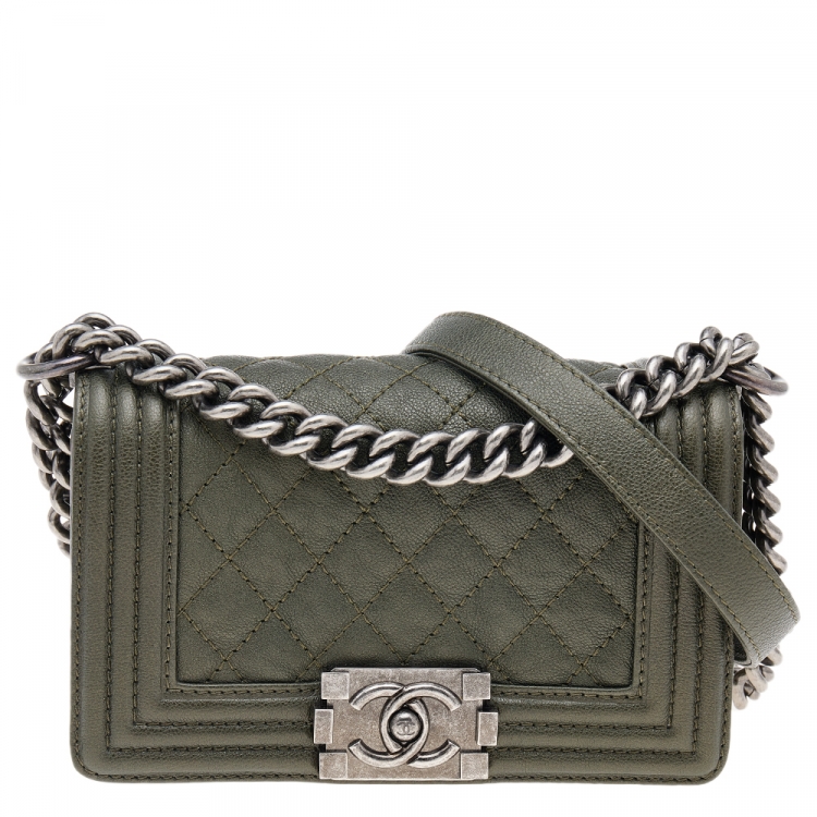 حقيبة شانيل بوي جلد مبطن أخضر بقلاب صغيرة