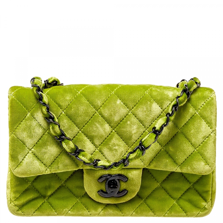 Chanel Green Quilted Velvet New Mini Classic Flap Bag