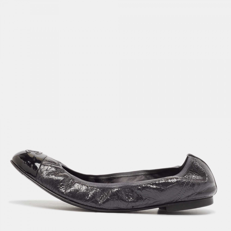 Chanel Grey/Black Patent Leather CC Scrunch Ballet Flats Size 42