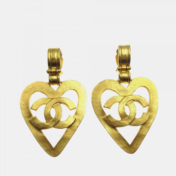 Pre Owned أقراط دلاية قلب شانيل بتثبيت كليب ذهبية