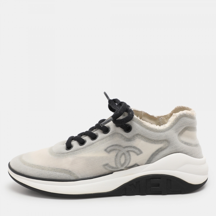 Chanel Light Grey Mesh CC Low Top Sneakers Size 36