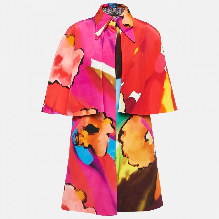 Pre Owned Chanel Multicolor Printed Silk Crepe De Chine Cape and Dress Set S