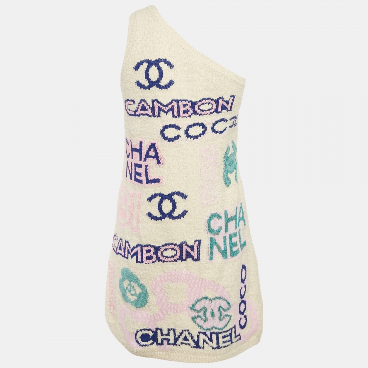 Chanel Off-White Intarsia Cotton Knit One-Shoulder Mini Dress S