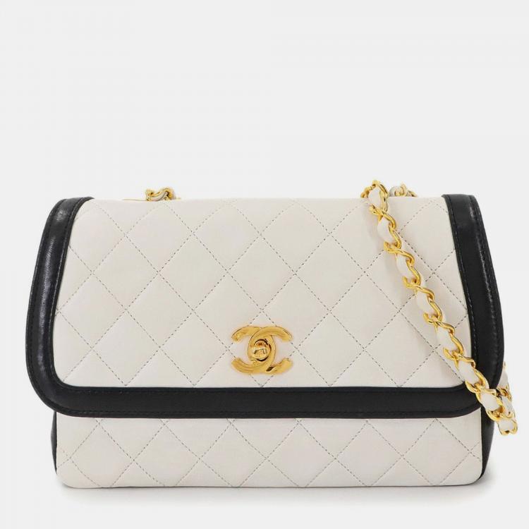 حقيبة شانيل قفل CC جلد أبيض/أسود مع غطاء