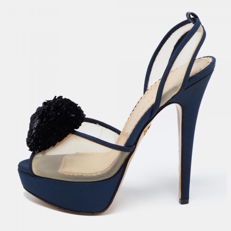 Pre Owned صندل شارلوت أوليمبيا نعل سميك بوم بوم بومولاين شبك وحواف سويدي أزرق مقاس 37