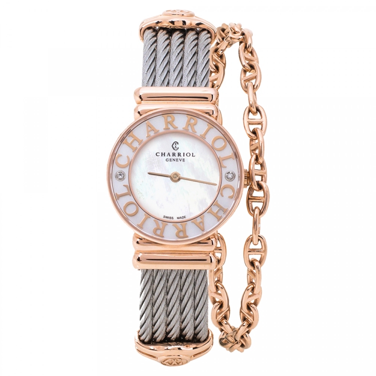 Pre Owned ساعة يد نسائية شاريول سان تروبيز ST028.3  ستانلس ستيل ألماس مطلية ذهب وردي عيار 18 صدف بيضاء 24.50 مم