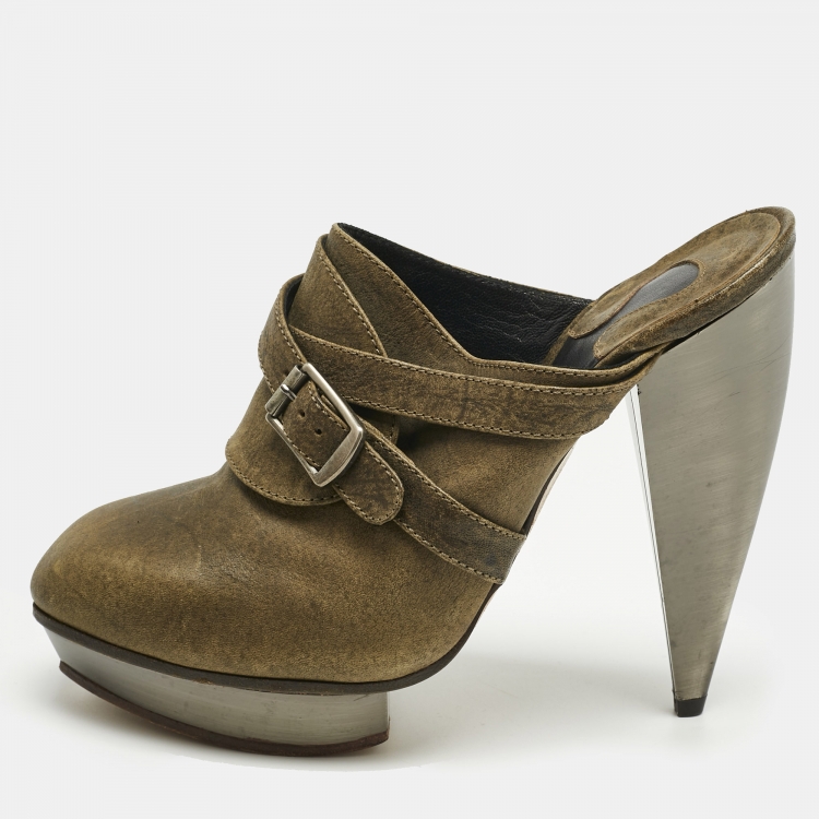 مملوكة مسبقًا صنادل كلوي جلد أخضر بإبزيم مقاس 37