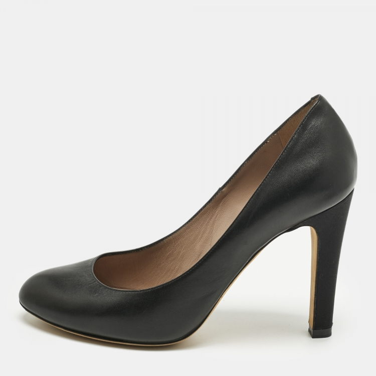 Pre Owned حذاء كعب عالي كلوي مقدمة مستديرة جلد أسود مقاس 37.5