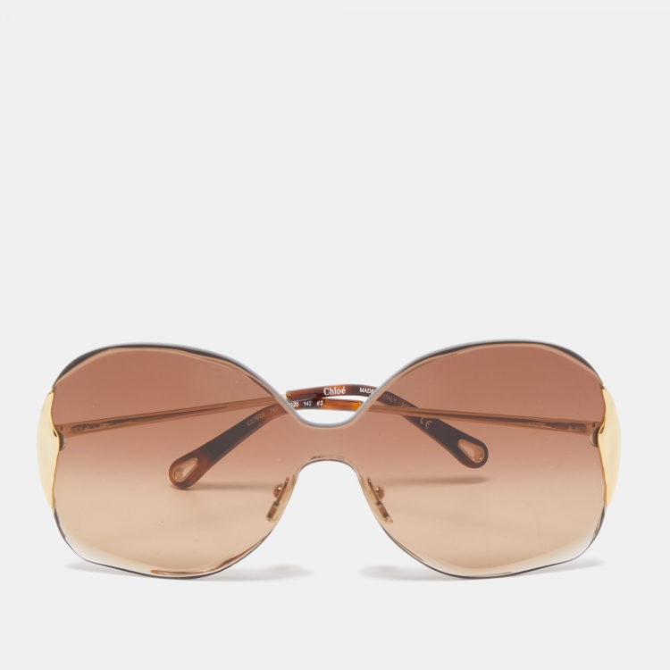 Pre Owned Chloe Brown Frame Gradient Oversized Sunglasses