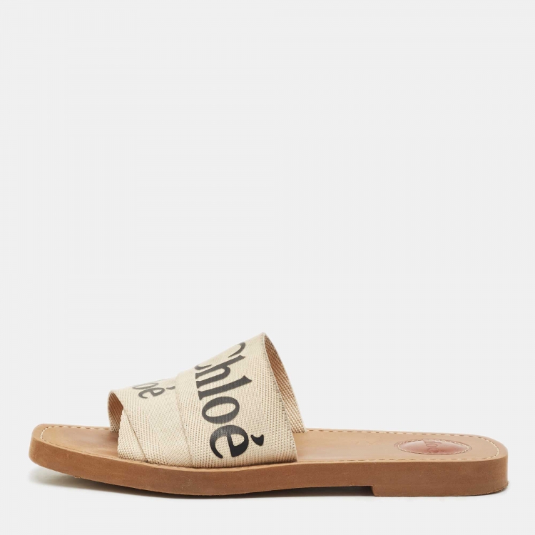 مملوكة مسبقًا صندل فلات كلوي وودي قماش مطبوع شعار أبيض مقاس 38