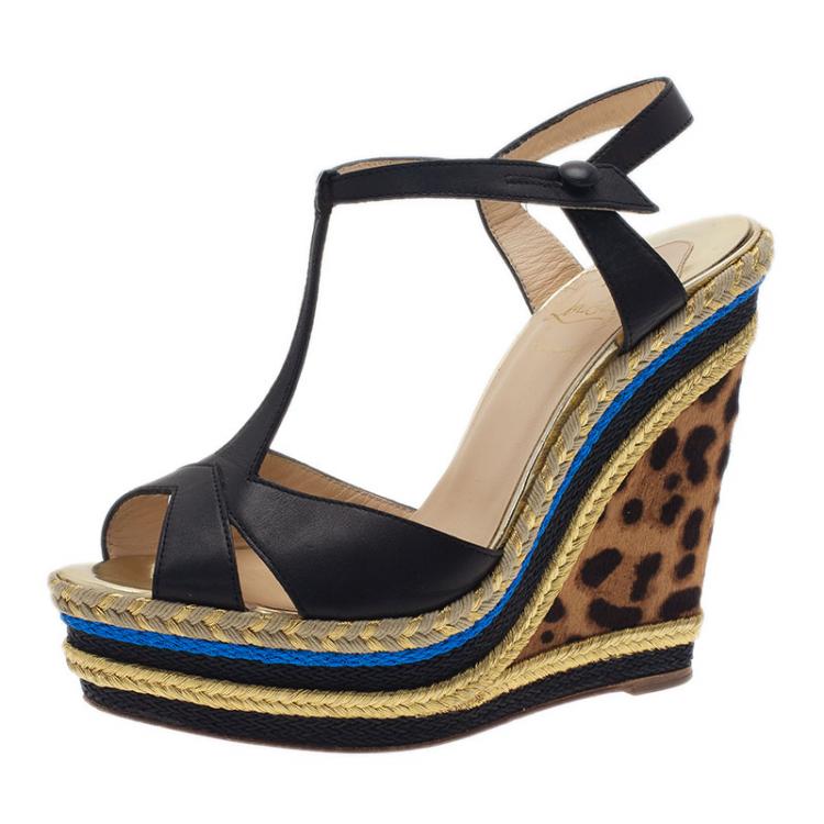 Pre Owned صندل كريستيان لوبوتان تروتوليتا جلد أسود سير حرف T  نعل روكي مقاس 39