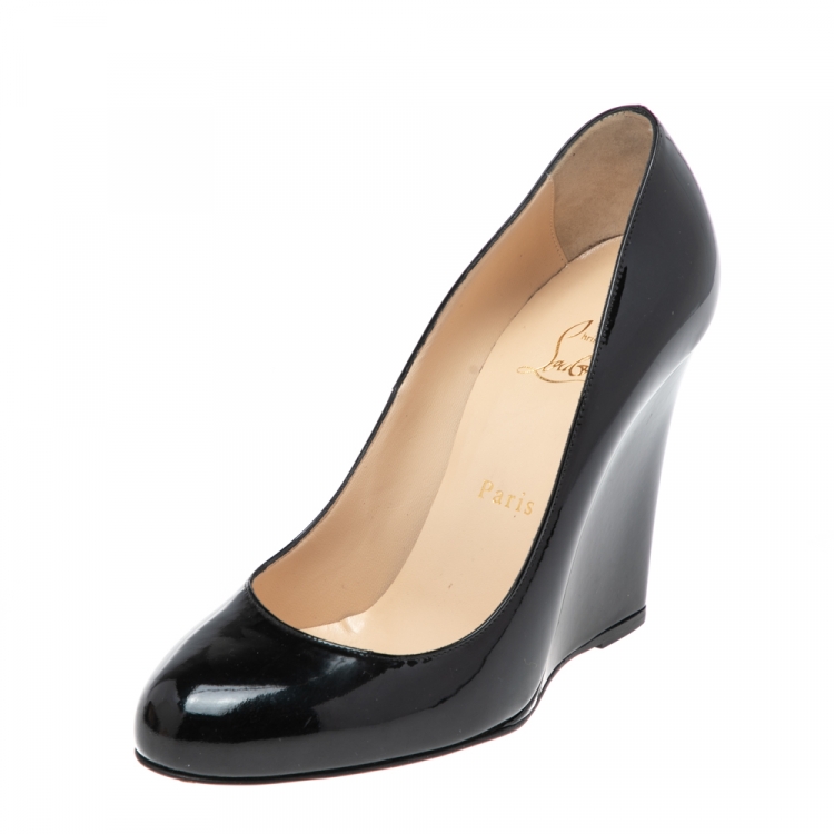 Christian Louboutin Black Patent Leather Ron Ron Zeppa Wedge Pumps Size 38