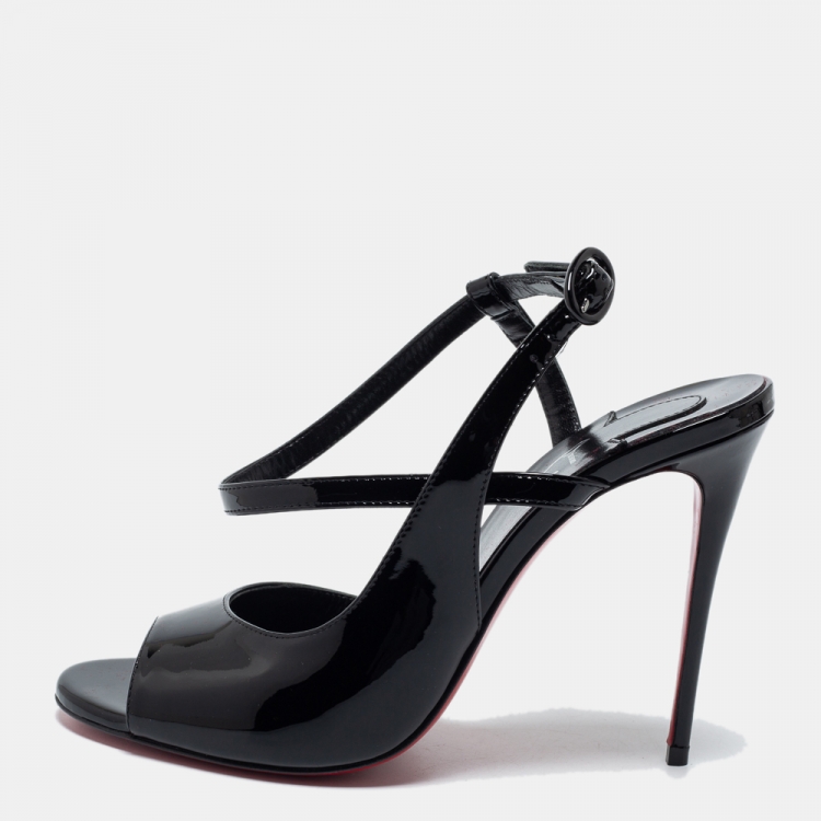 Pre Owned Christian Louboutin Black Patent Leather So Jenlove D'orsay Sandals Size 38