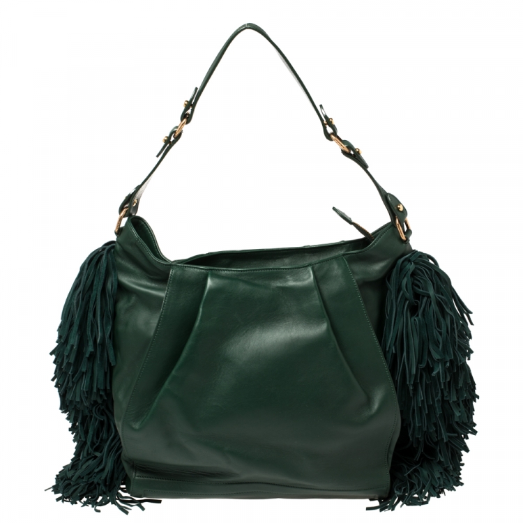حقيبة هوبو كريستيان لوبوتان جوستين شراشيب سويدي و جلد أخضر