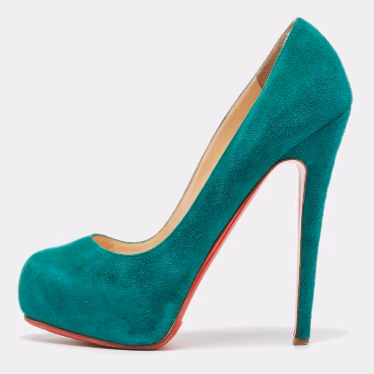 حذاء كعب عالي كريستيان لوبوتان شاموا أخضر مقاس 37