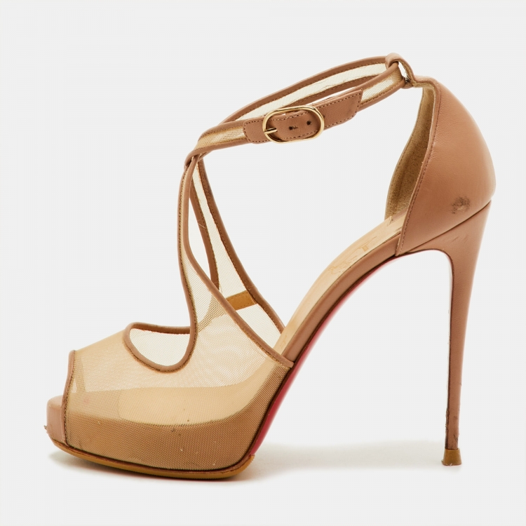 Pre Owned حذاء كعب عالي كريستيان لوبوتان ماريكار جلد وميش بيج مقدمة مفتوحة منصة مقاس 37