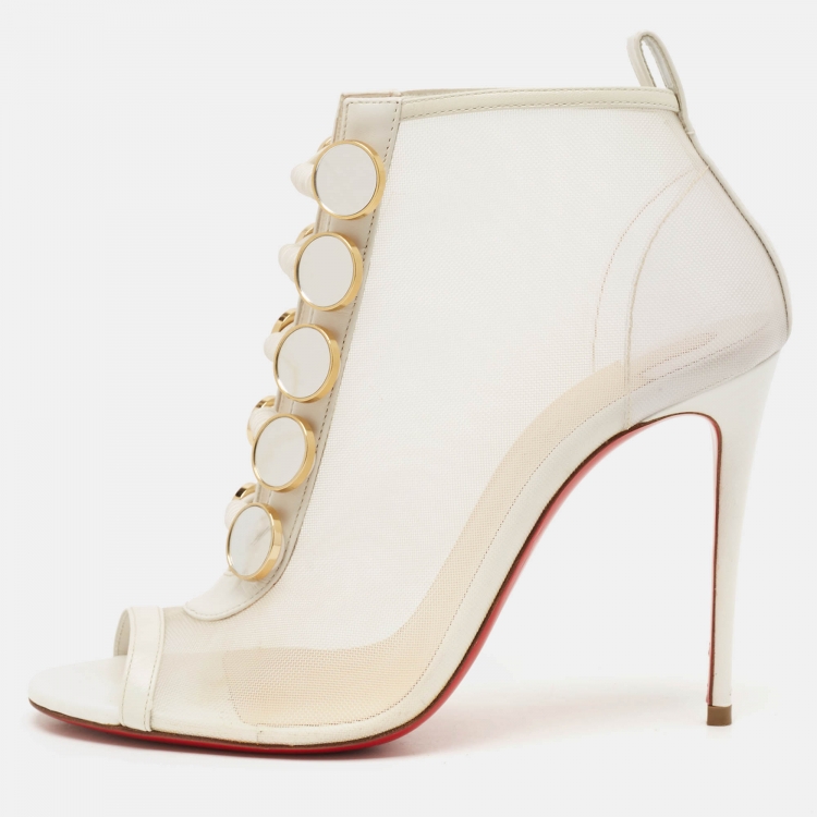 Pre Owned حذاء بوت للكاحل كريستيان لوبوتان ماريكا جلد وشبك أبيض مقاس 36.5