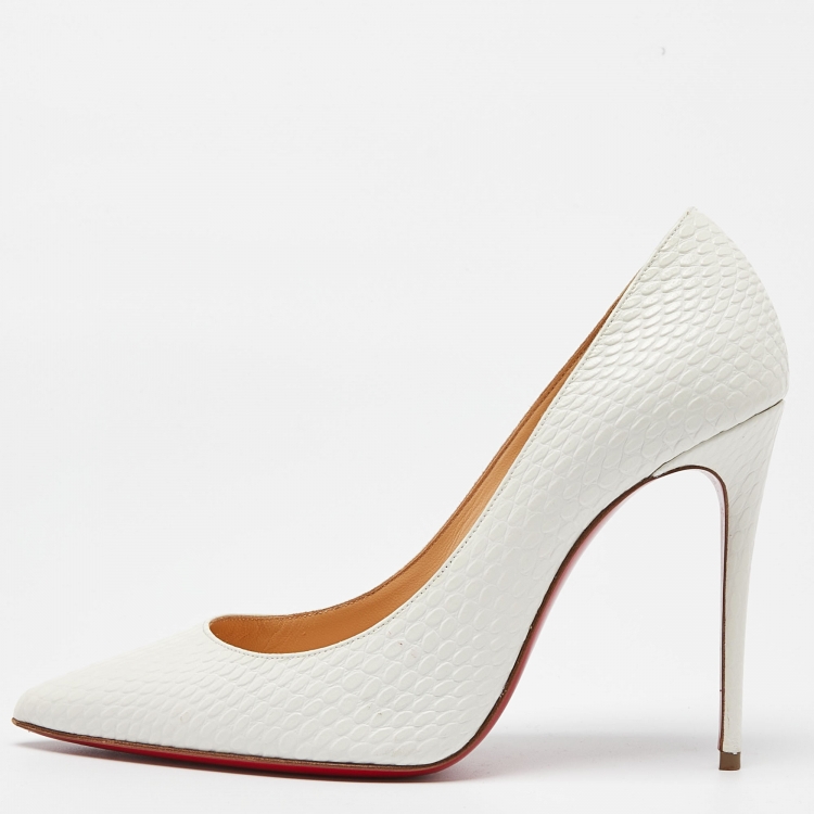 Christian Louboutin White Python Effect Leather Kate 100 Pointed Toe Pumps Size 37
