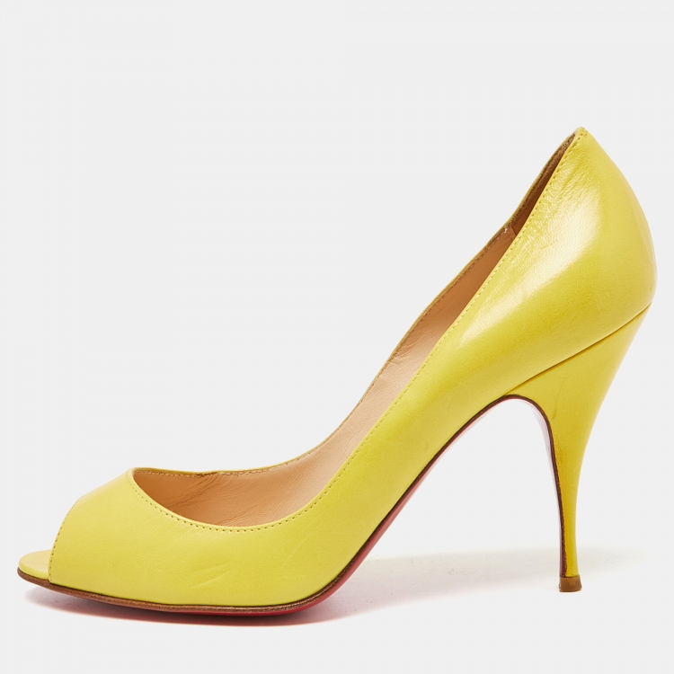 Pre Owned حذاء كعب عالي كريستيان لوبوتان "ماري" جلد أصفر مقاس 38.5