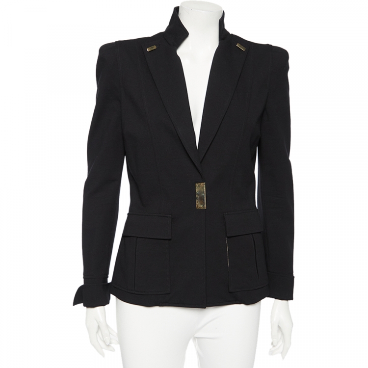 Class by Roberto Cavalli Black Knit Pocketed Single Breasted Blazer M