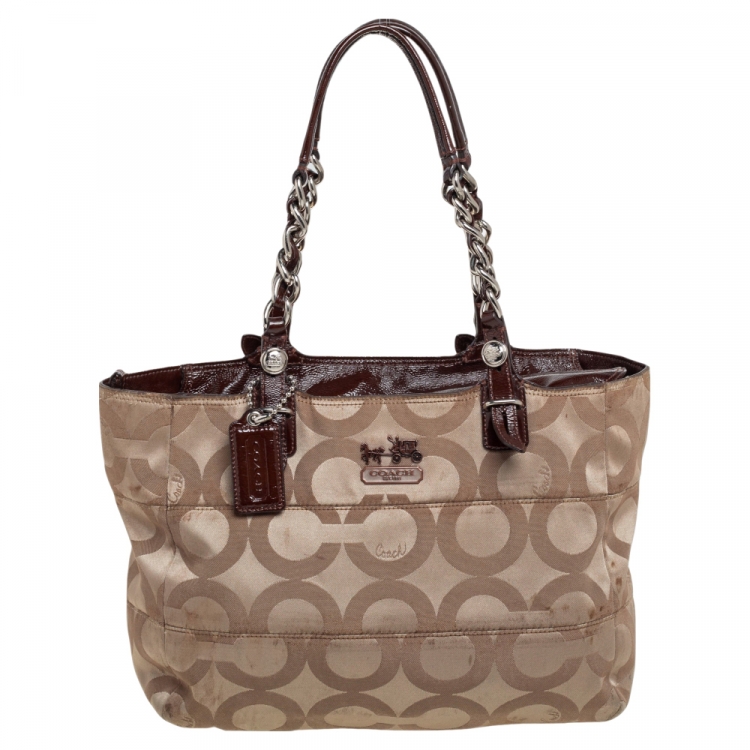 Pre Owned  حقيبة يد توتس كوتش تريبيكا جلد لامع وكانفاس أوب أرت بيج / بني