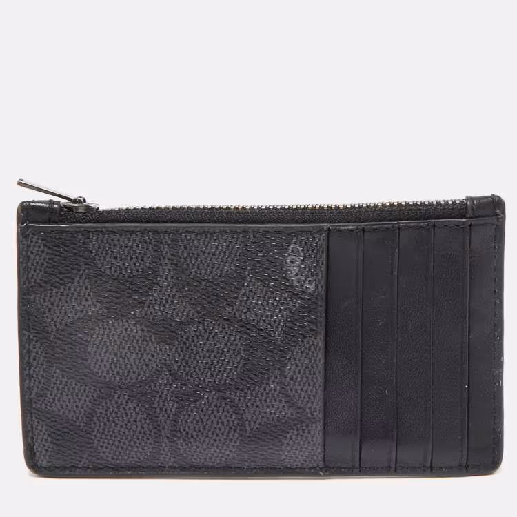 مملوكة مسبقًا حافظة بطاقات بسحّاب من كوتش قماش مطبوع وجلد أسود مغطى توقيع
