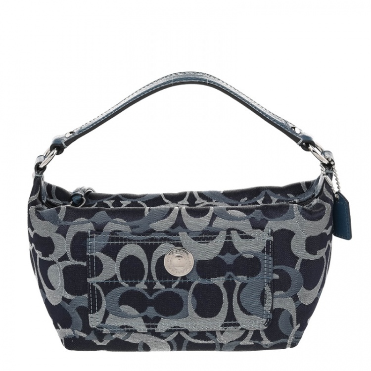 Pre Owned حقيبة هوبو كوتش جلد وكانفاس أزرق بالشعار