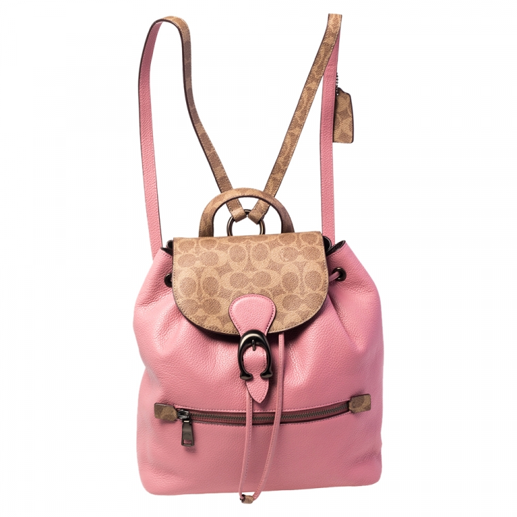 مملوكة مسبقًا حقيبة ظهر كوتش بلوكينغ افي كانفاس مميز وجلد وردي/ بني