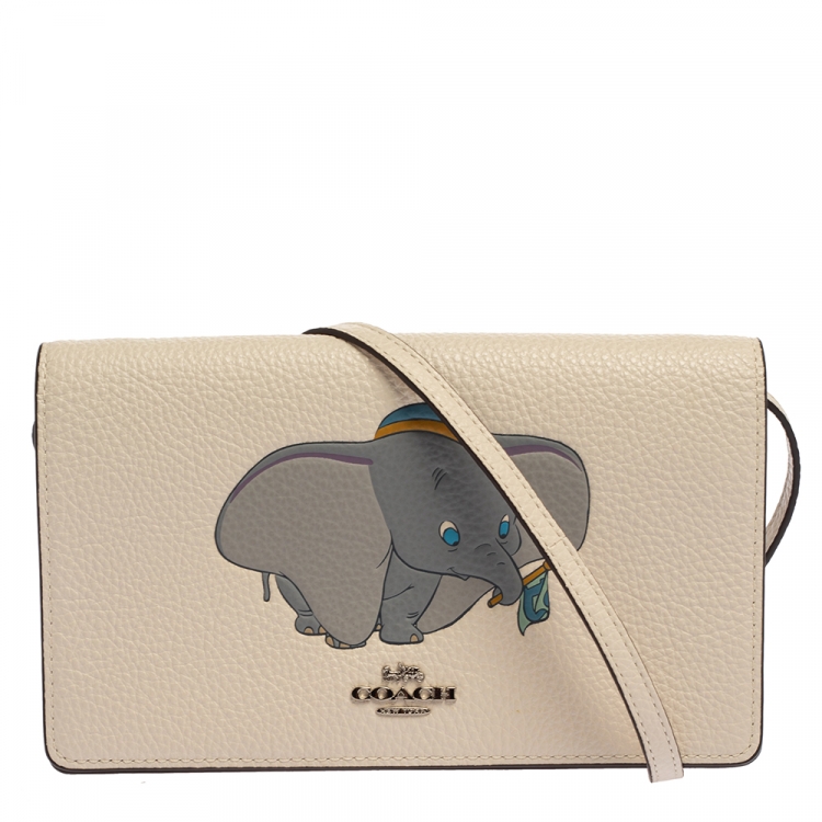 Coach Off White Pebbled Leather Dumbo Foldover Crossbody Bag