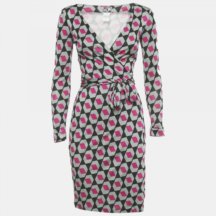 Pre Owned فستان ديان فون فرستنبرغ نيو جوليان جيرسي وردي/أخضر مقاس صغير جداً (إكسترا سمول)