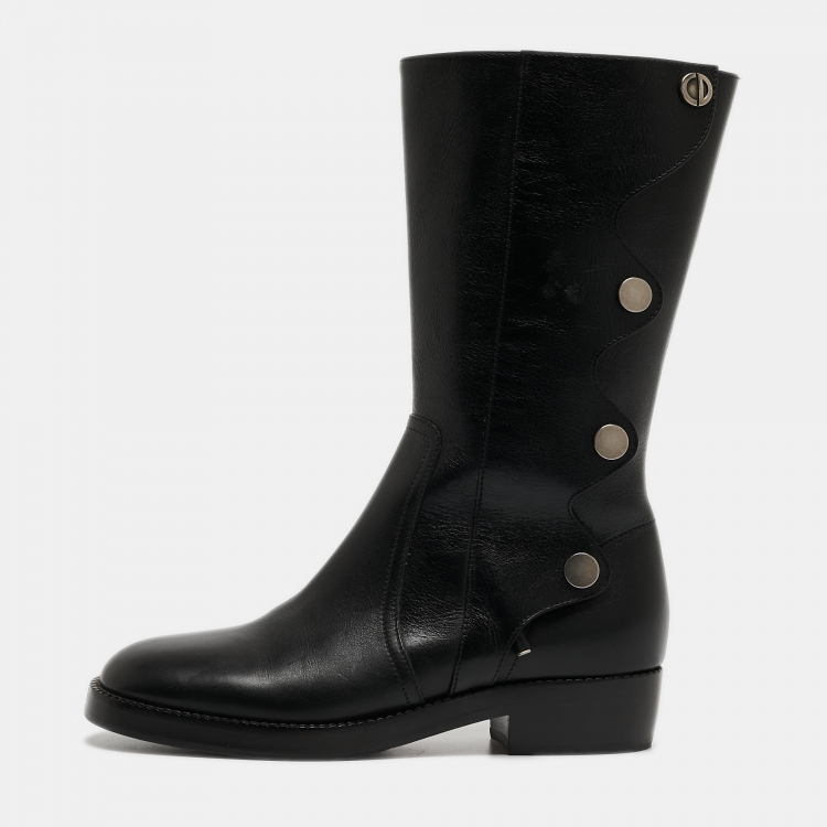 مملوكة مسبقًا Dior Black Leather Moto Boots Size 36