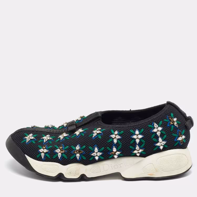 مملوكة مسبقًا حذاء رياضي ديور فيوجن مزخرف شبك أسود مقاس 36.5