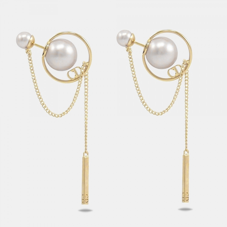 Pre Owned أقراط ديور سي دي لؤلؤ صناعي معدن ذهبي