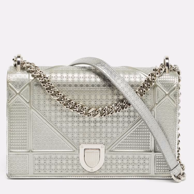حقيبة كتف ديور ديوراما جلد براءة اختراع تصميم ميكروكاناج فضية متوسطة