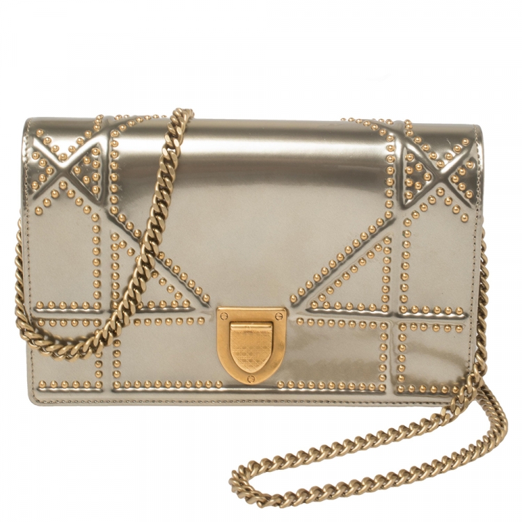 Dior Metallic Gold Patent Leather Diorama Flap Shoulder Bag