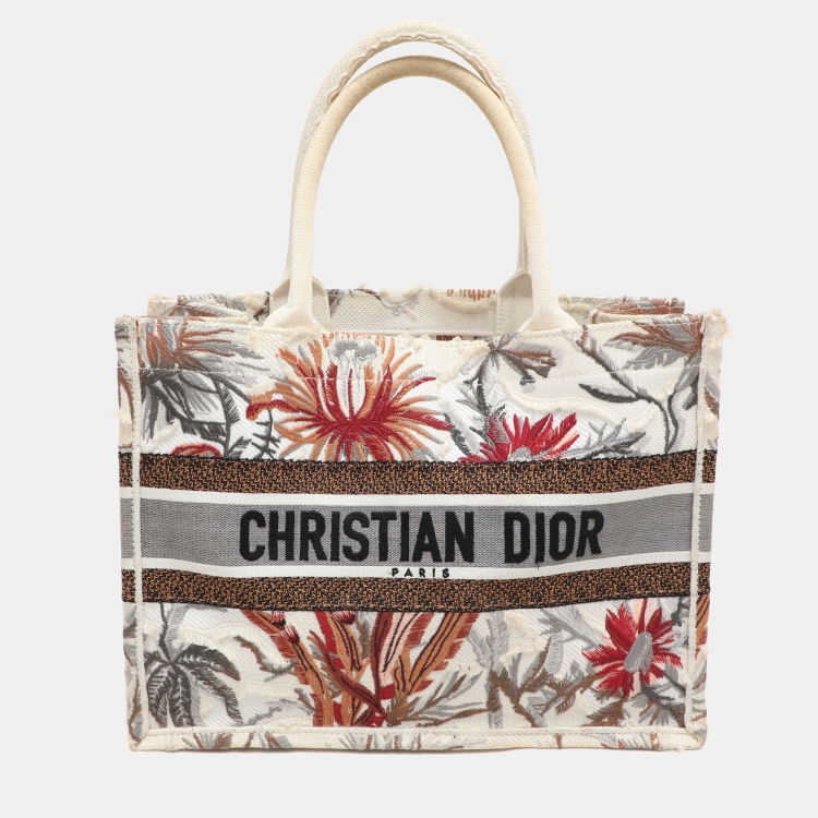 مملوكة مسبقًا حقيبة يد توتس ديور بوك كانفاس مطرز تويل دو جوي تروبيكاليا متعدد الألوان متوسطة