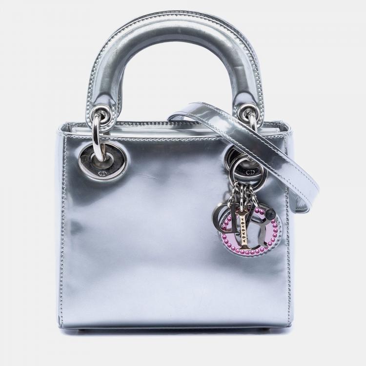 مملوكة مسبقًا حقيبة ديور ليدي ديور ميني معدنية فضية إصدار محدود بكين الصين مزدوجة البراءة