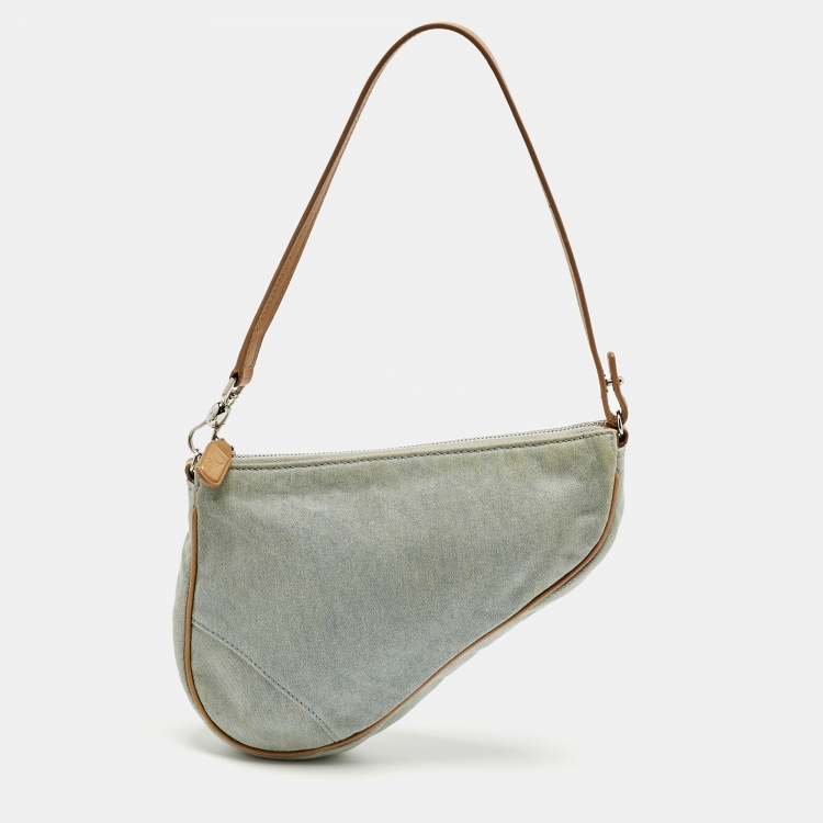 Pre Owned حقيبة سادل صغيرة دنيم مغسول أزرق ديور