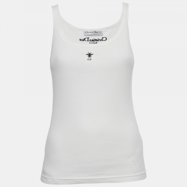 Pre Owned بلوزة ديور قطن بحياكة ضلعية بتطريز شعار أبيض مقاس صغير - سمول